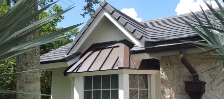 Our in-house sheet metal shop can fabricate any roof related components or specialty items such as door pans, chimney caps, copper bay windows, decorative finials, or even ornate custom drainage components. These can be added to your existing plan to help differentiate your home with a distinctive touch.
